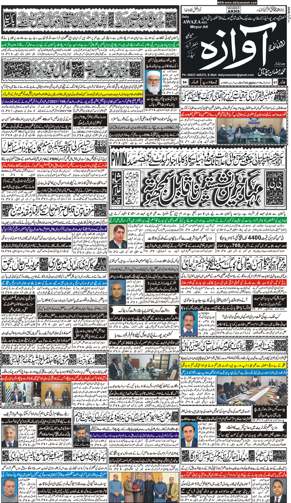E-PAPER DAILY AWAZA MIRPUR